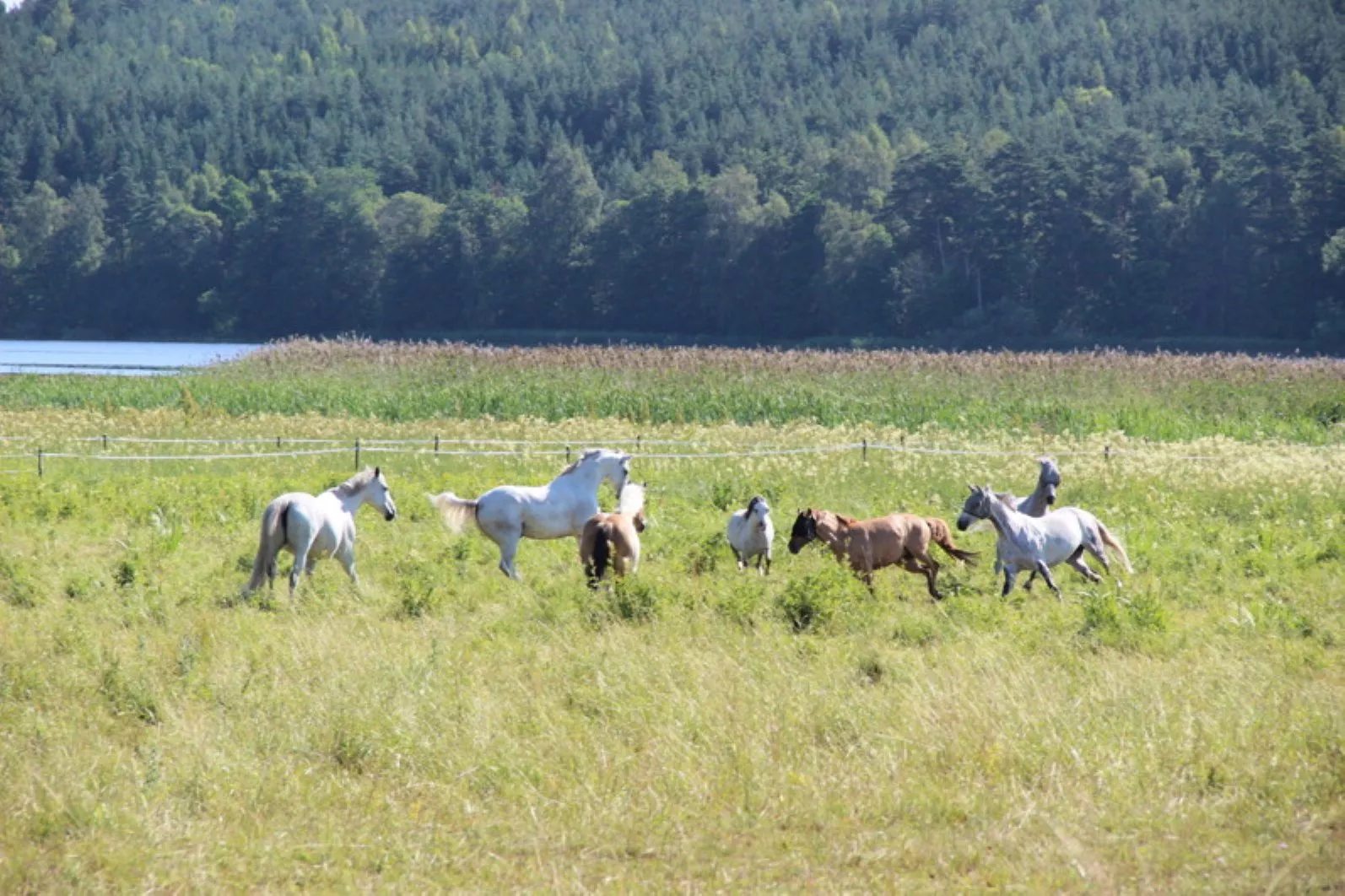 Katrinedals Gård har stora sommarbeten längs Mälaren i nära anslutning till stallet, och fina möjligheter till uteritt längs grusvägar, skog och vall.